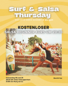 NEU im Sommer 2025: Der AYA Surf & Salsa Thursday ersetzt ab sofort den langjährigen Übungsabend jeden Donnerstag (bisher in… AYA meets Irie Surf weiterlesen - Gastro-Tipp „Piqueo“ Freiburg