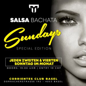 Jeden 2. und 4. Sonntag im Monat finden 2024 die Salsa Bachata Sundays im Corriente in Basel statt.